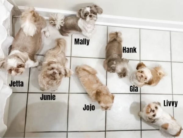 It's a house full of love and fluff at our home! Yes, this bunch sleeps with us every night. Not pictured is daddy's favorite OG - our very first Shih Tzu, 12-year-old Stellie. She's a cranky redhead who didn't want to be in the picture! Livvy, Mally, and Jetta are all retired mommas. After giving us beautiful litters, they each deserve a luxurious life as a retired House Princess! As seasoned Shih Tzu breeders, we take pride in each of their unique personalities. Each one of them is different, special, quirky, and unique in their own way, and we adore them all!